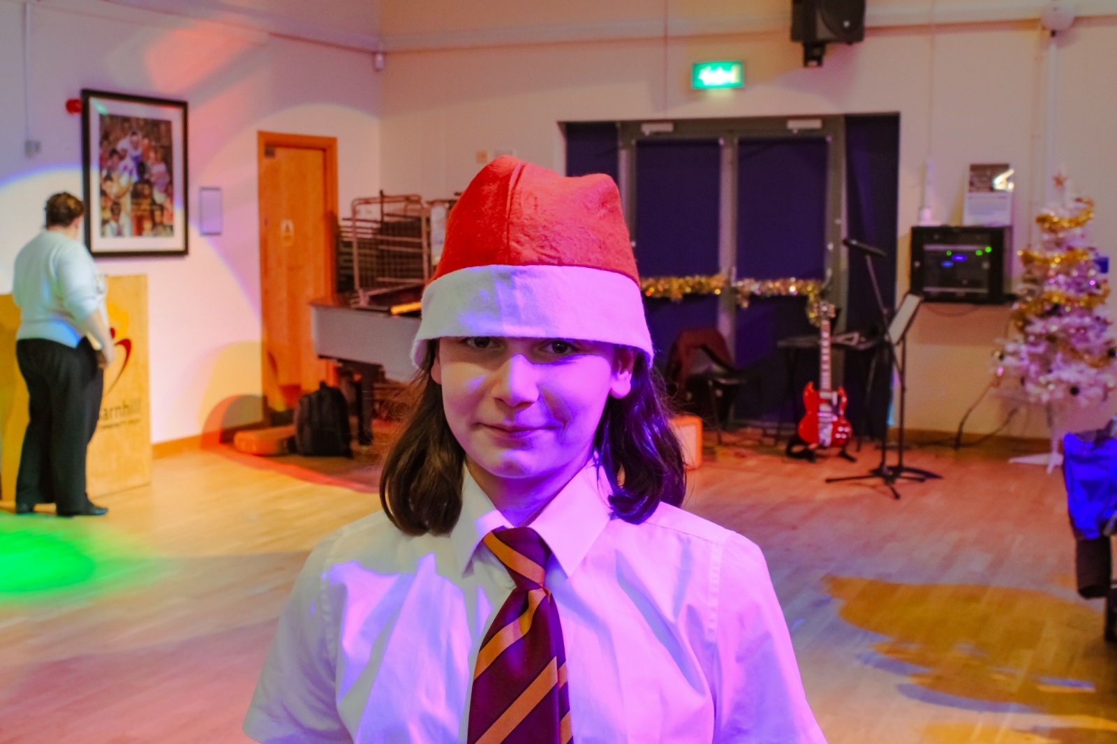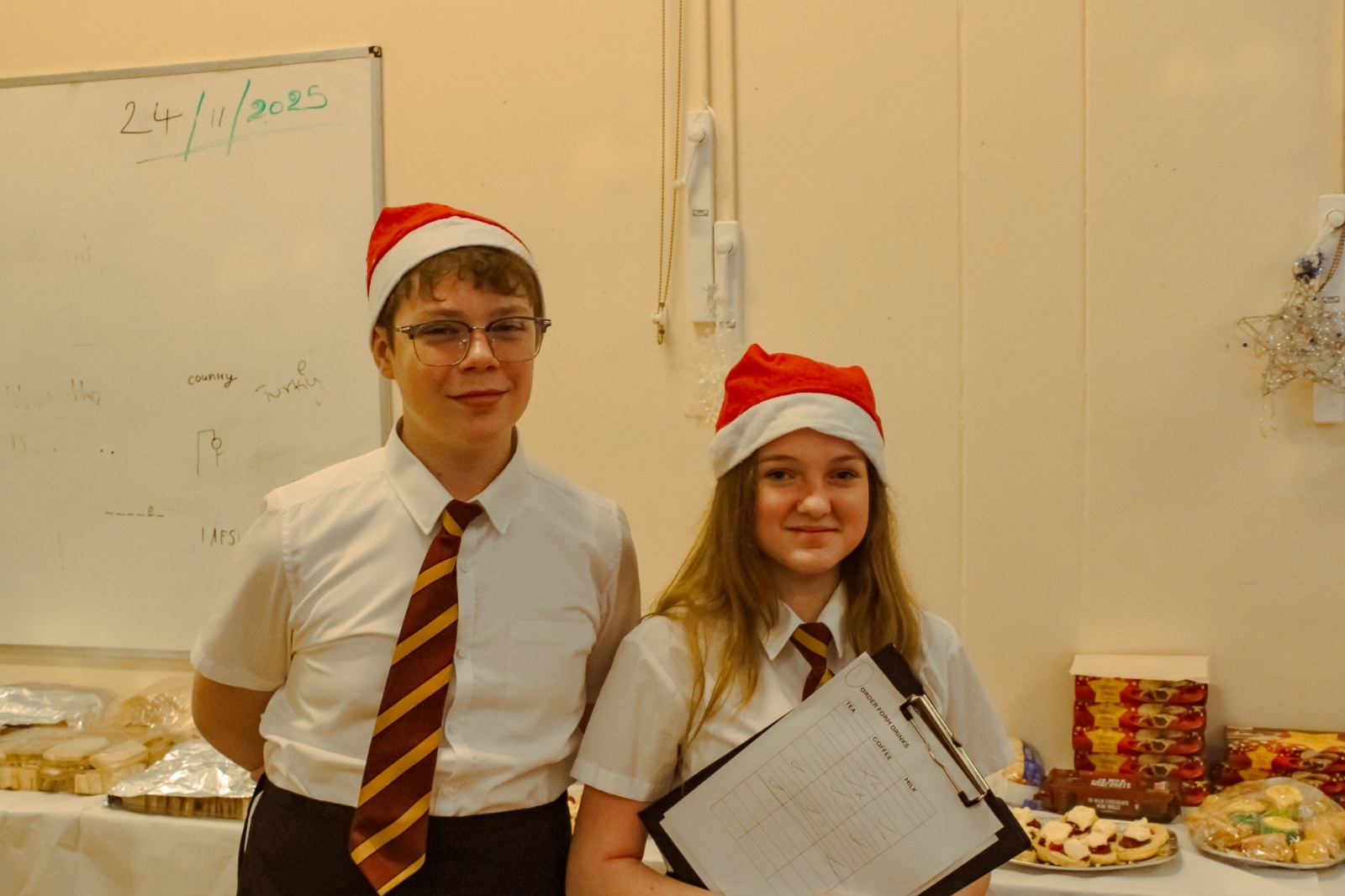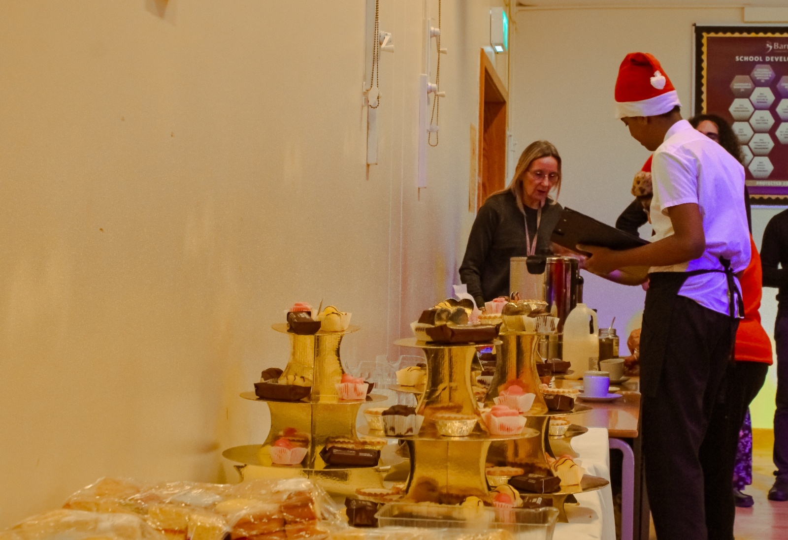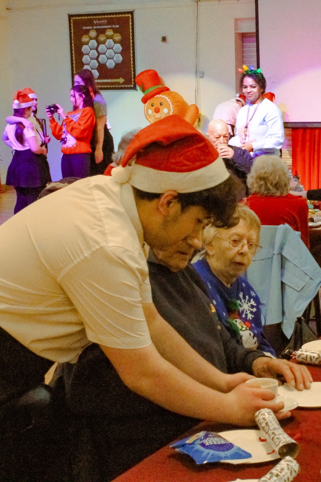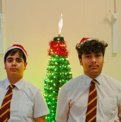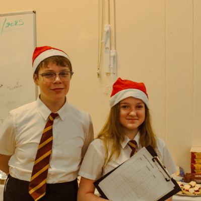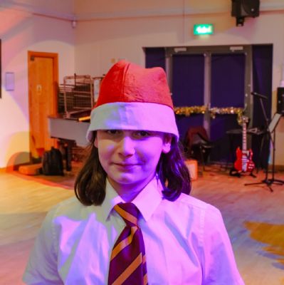 We then gave each guest a raffle ticket and lots of people won prizes. Me, Jaycee and Muzamil called out the bingo and then it was time for Santa to arrive. I dressed up as Santa and gave everyone a chocolate. My whole class took part, and it was really fun.
