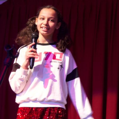 Sehajpreet danced beautifully to a bhangra beat that Mrs Gill, enthusiastically encouraged by the crowd, found so compelling she just had to get on stage and join in. Kavya then took to the stage to perform ‘A Million Dreams’ dressed in a grand ballgown that fitted the occasion perfectly.  Brother and sister act, Sukhpreet and Rajveer, gave us more bhangra with fantastic choreography and synchronisation (Mrs Gill was too worn out to return the stage a second time!) and Laura and Cria performed their own routine to Lady Gaga’s ‘Dead Dance’ with matching outfits and haunting moves.