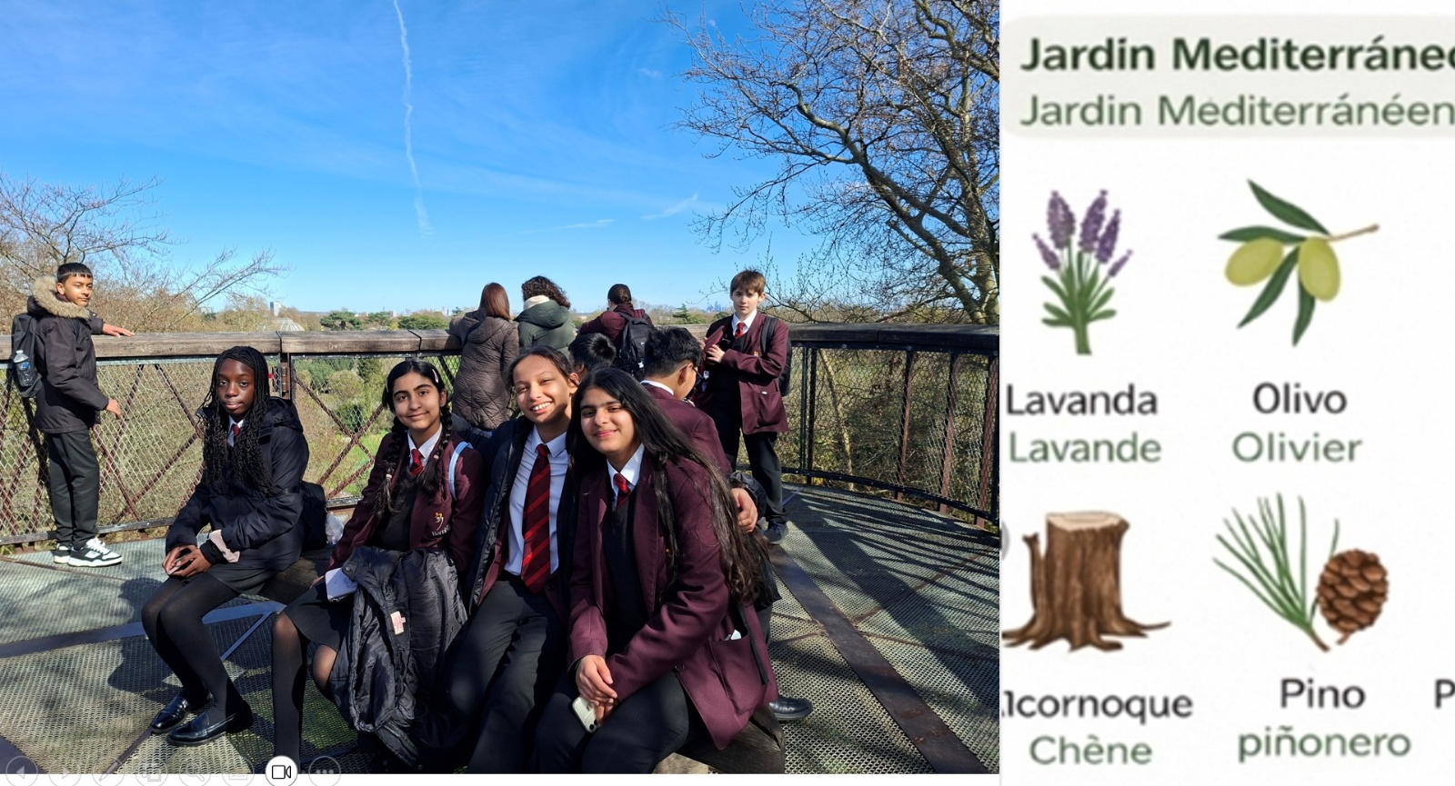 Ms Aguilera, MFL teacher and trip lead said ‘for a day we could feel as though we were in Costa Rica, with the humidity and by seeing giant bamboos, banana trees, and coffee plants. We also saw giant sequoias from Canada, looking up at their towering canopies from the TreeTop Walkway. We also visited a Mediterranean garden with olive trees, lavender, rosemary, stone pines... and we learned that the names of many plants are very similar in English and Spanish or French’.