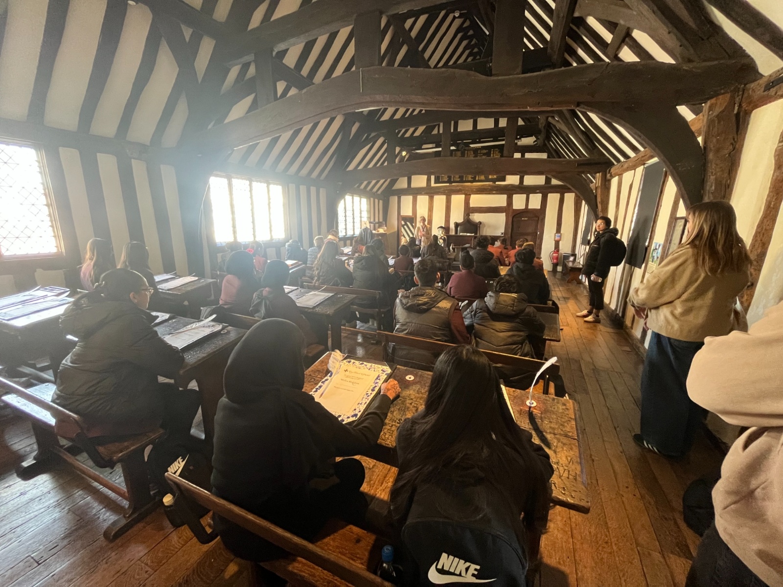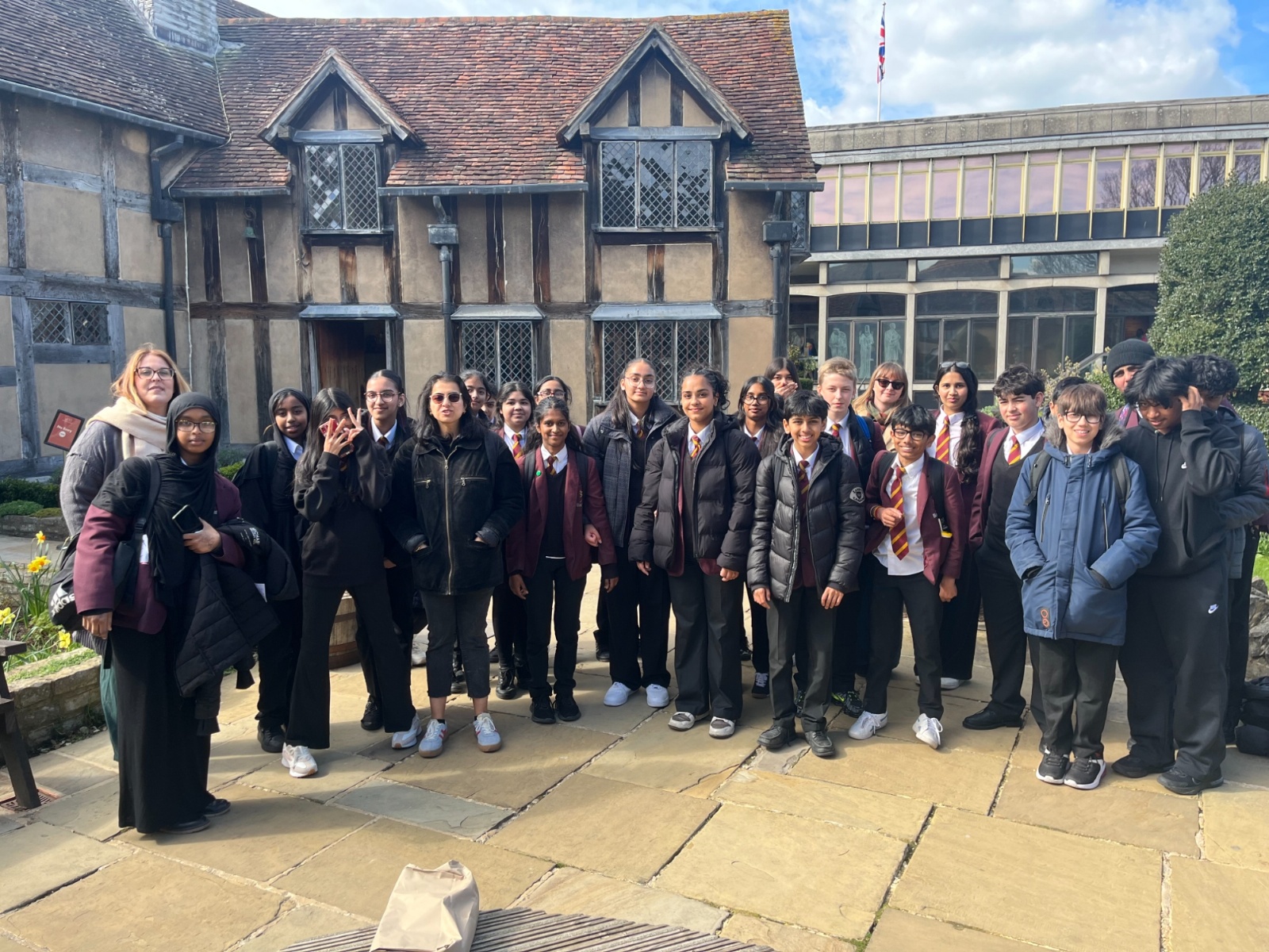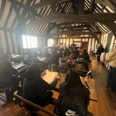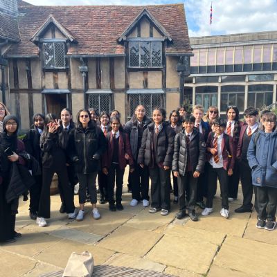 Other Year 9 students were treated to an English-led trip to Stratford-upon-Avon, where they explored the early life of the renowned playwright, William Shakespeare. The day began with a tour of Shakespeare’s former school, where students gained a fascinating insight into just how different education was in the 16th century, with lessons conducted in Latin and a school day that ran from 6am to 6pm, six days a week, a fact that particularly shocked Year 9. Students also had the opportunity to practice their pencraft and calligraphy, using authentic Elizabethan-style quills, with varying degrees of success. They then visited Shakespeare’s family home, where a guided tour brought his tumultuous childhood to life. The trip was a fantastic opportunity to deepen students’ understanding of the context that shaped Shakespeare’s work and has set them up brilliantly as they begin their GCSE Shakespeare studies.