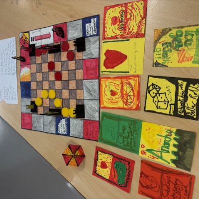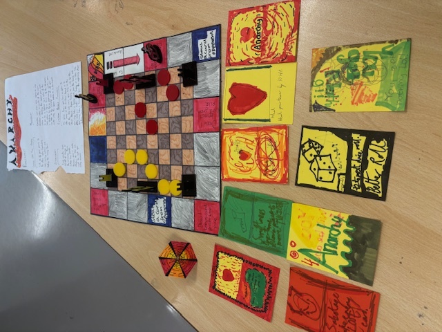 Students were set the challenge to design and make a board game containing, rules, counters, dice, create the board and other components of their choice to create a well thought out, strategic board game! 5 groups formed, teamwork set in motion and learning outcomes achieved!